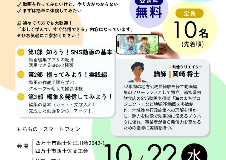 - SNS動画制作ワークショップ開催のお知らせ